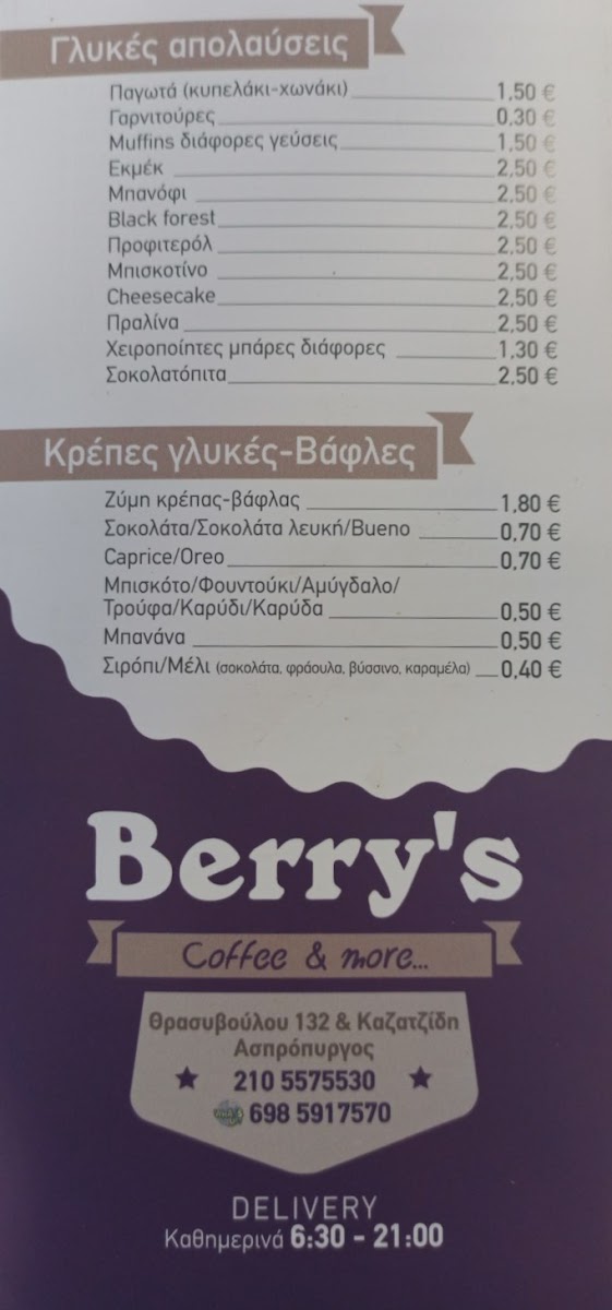 Visiting Berry's Ασπροπύργου promises not just a meal, but a delightful experience that tantalizes the taste buds and warms the heart. Whether you're looking for a quick snack or a leisurely coffee break, this venue offers a taste sensation that will keep you coming back for more.